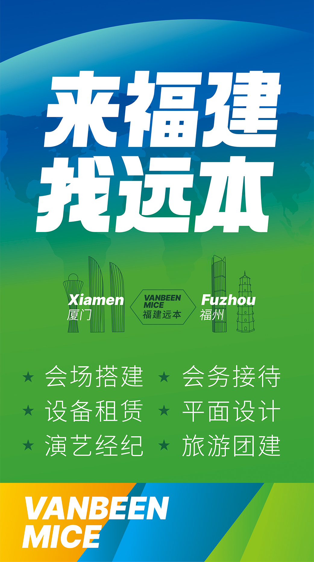 廈門遠本成立于2013年,是一家集策劃設(shè)計、落地搭建以及會議接待等全案服務(wù)的DMC公司。公司擁有LED屏幕、燈光音響、木作工廠等專業(yè)舞美設(shè)備,擁有一批專業(yè)穩(wěn)定的策劃設(shè)計和會務(wù)接待團隊,能夠快速、精準(zhǔn)地為客戶提供優(yōu)質(zhì)的策劃、設(shè)計、搭建、接待等服務(wù)。公司已服務(wù)過華為、阿里、麥當(dāng)勞、中國移動、埃克森美孚、興業(yè)銀行、招商銀行、華潤三九、齊魯制藥、萬邦制藥等國內(nèi)外知名企業(yè),并成功入選中國國旅、中旅、康輝國旅、錦江國旅、中智商展、墨馬傳媒等國內(nèi)知名PCO公司供應(yīng)商庫。